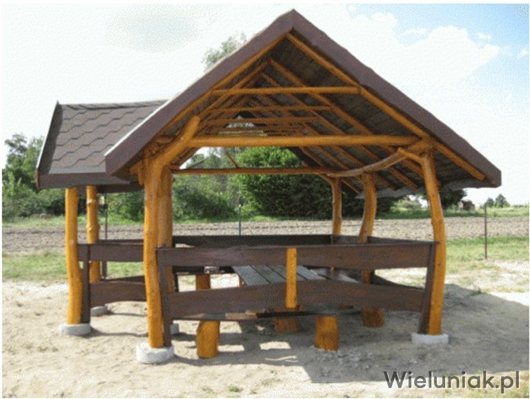 7. Miecze wspierające altanę wykonane z okrąglaków.