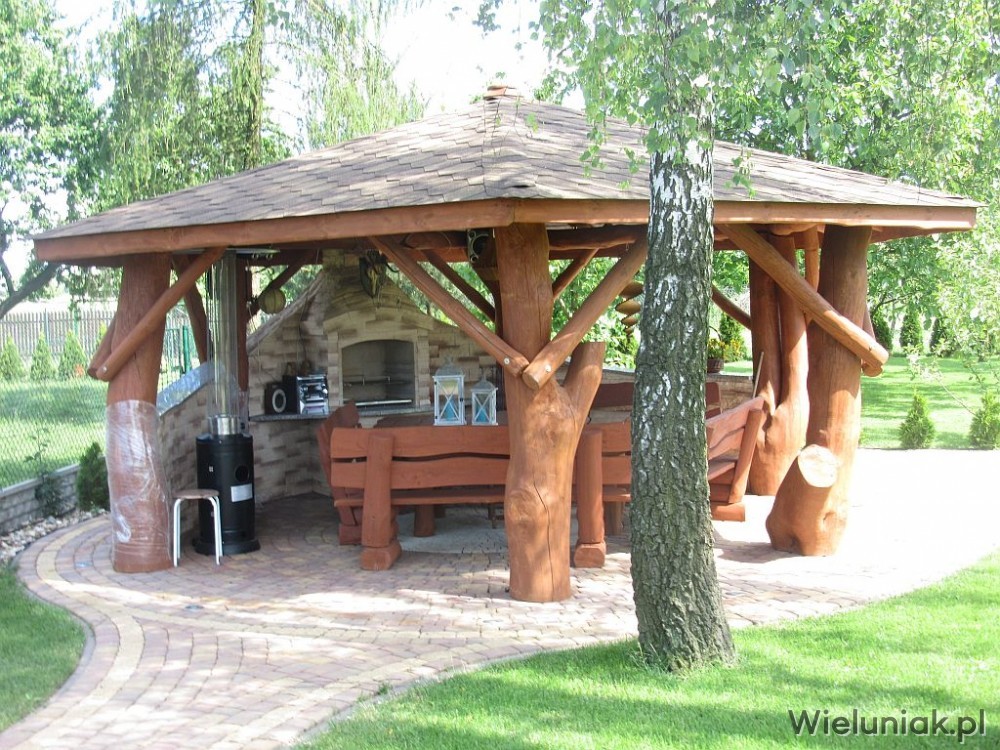 1. Elementy altany wykonane z pni drzew korowanych, suchych, wyszlifowanych, zaimpregnowanych.