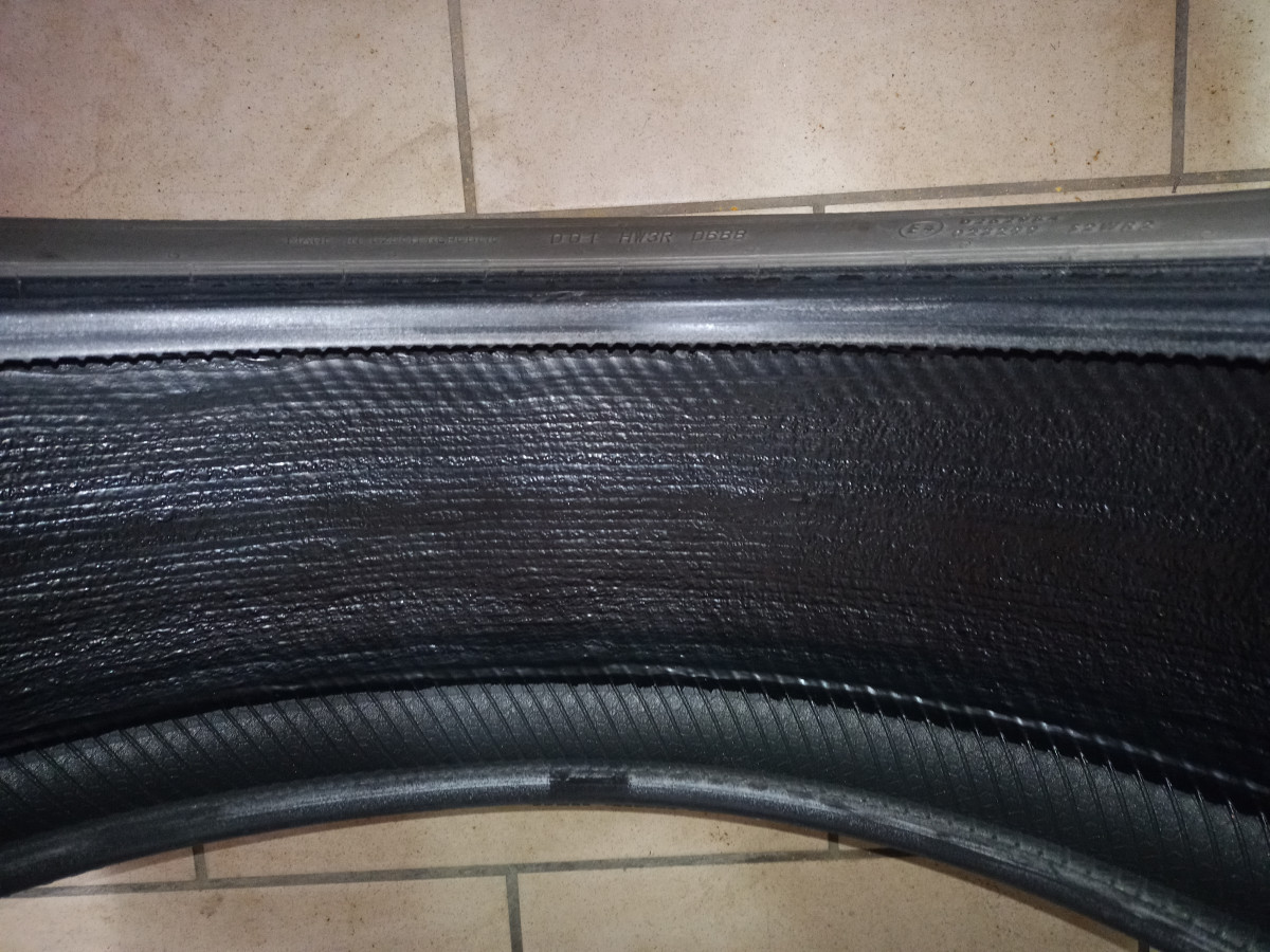 Opony nieuszkodzone wykonane w technologii samoistnego wewnętrznego uszczelniania się (widoczne na ostatnim zdjęciu)