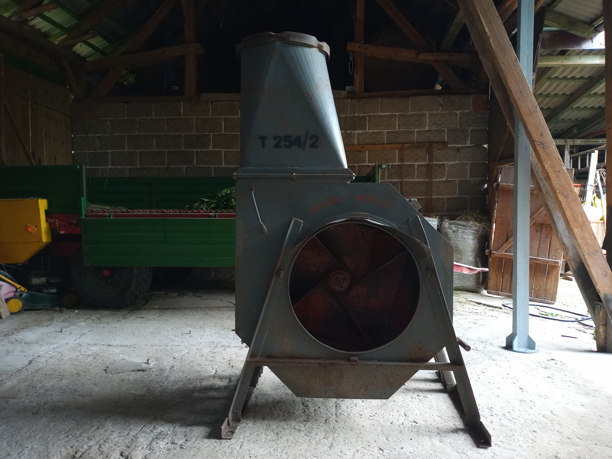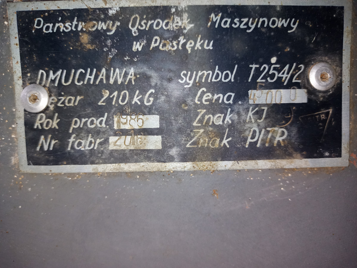 Sprzedam Polską dmuchawę do siana T254/2 wraz z kompletem rur wyprodukowaną przez Państwowy Ośrodek Maszynowy w Pasłęku.
