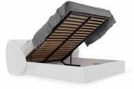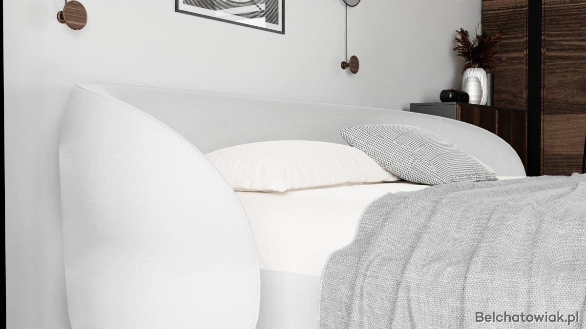 Wyjątkowy zagłówek o ekstrawaganckim charakterze podkreśla indywidualność wnętrza, a solidna konstrukcja z wbudowanym stalowym stelażem i praktycznym pojemnikiem na pościel sprawia, że łóżko jest nie tylko piękne, ale i wygodne w codziennym użytkowaniu
