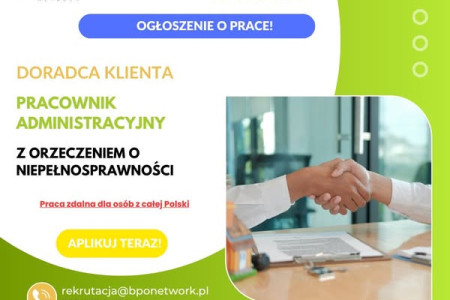 Doradca klienta - pracownik administracyjny z orzeczeniem o niepełnosprawności (3/4 etatu)